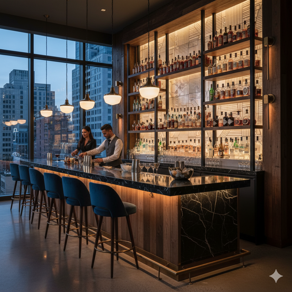We specialize in designing high-performing retail liquor environments that prioritize both customer flow and security. Our service focuses on creating highly accessible layouts with clear signage and wide aisles, guiding customers efficiently from entry to checkout. We implement layered, focused lighting—utilizing LED strips and spotlights—to highlight key products and enhance the perceived value of premium selections.